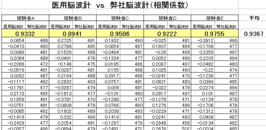 被験者の頭部に配置した電極を分岐させて一方を医用脳波計、一方を弊社脳波計に接続